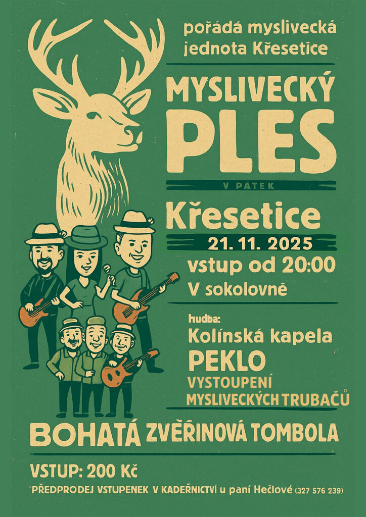 • Myslivecký ples Křesetice v sokolovně 21.11.2025